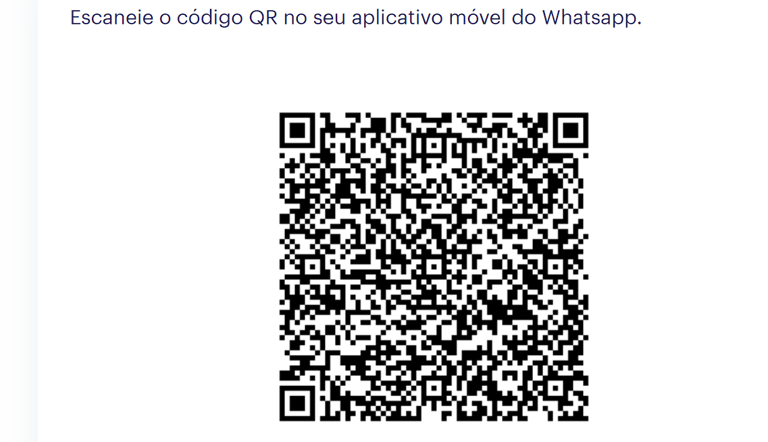- Aparecerá um QR code. Use o WhatsApp no seu dispositivo e faça a leitura desse QR code para vincular o dispositivo ao seu chatbot.
